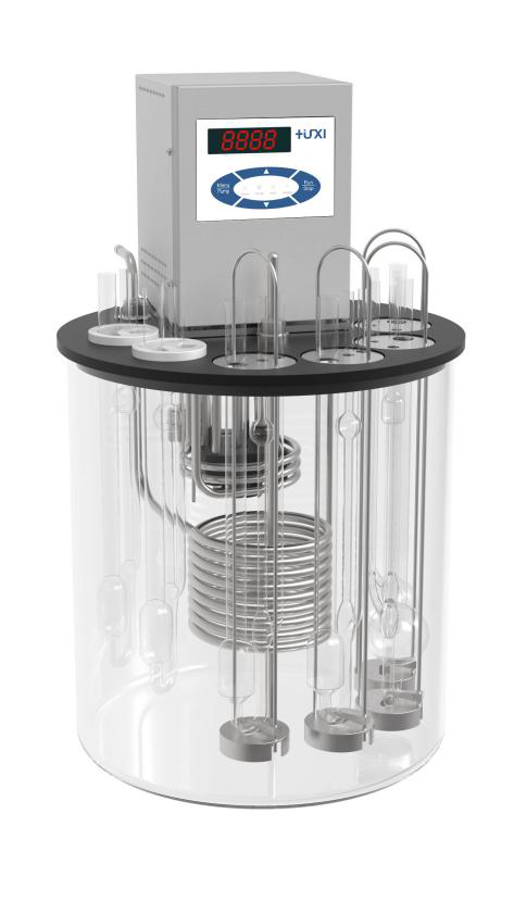 恒溫循環(huán)器安裝在水槽的頂部,配置有浸入式壓力吸力泵,可對浴槽液體進(jìn)行豎直和水平方向的攪拌,使槽內(nèi)液體溫度均勻,穩(wěn)定。浴槽蓋上可設(shè)計(jì)單孔及多孔(最多6孔),方便進(jìn)行多粘度計(jì)的測量和恒溫。
