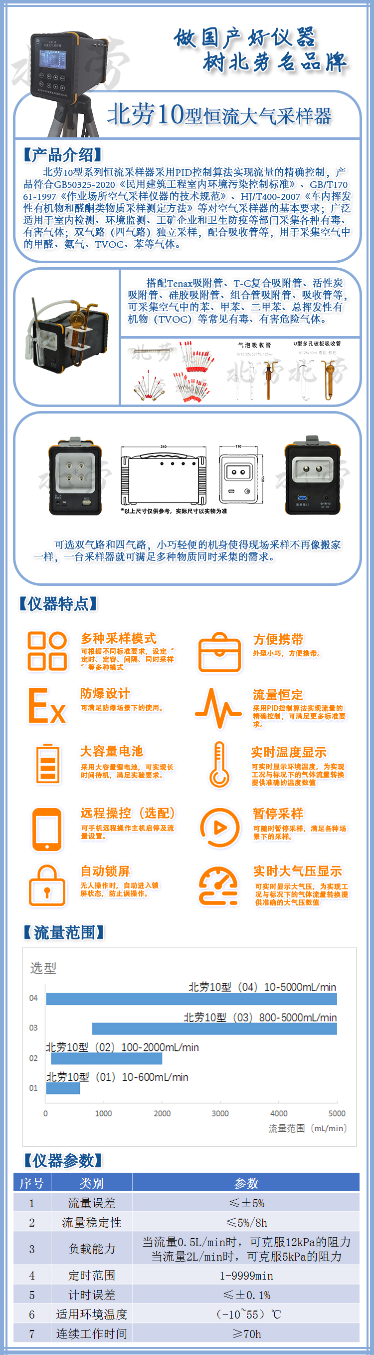 產(chǎn)品描述:北勞10型恒流大氣采樣器