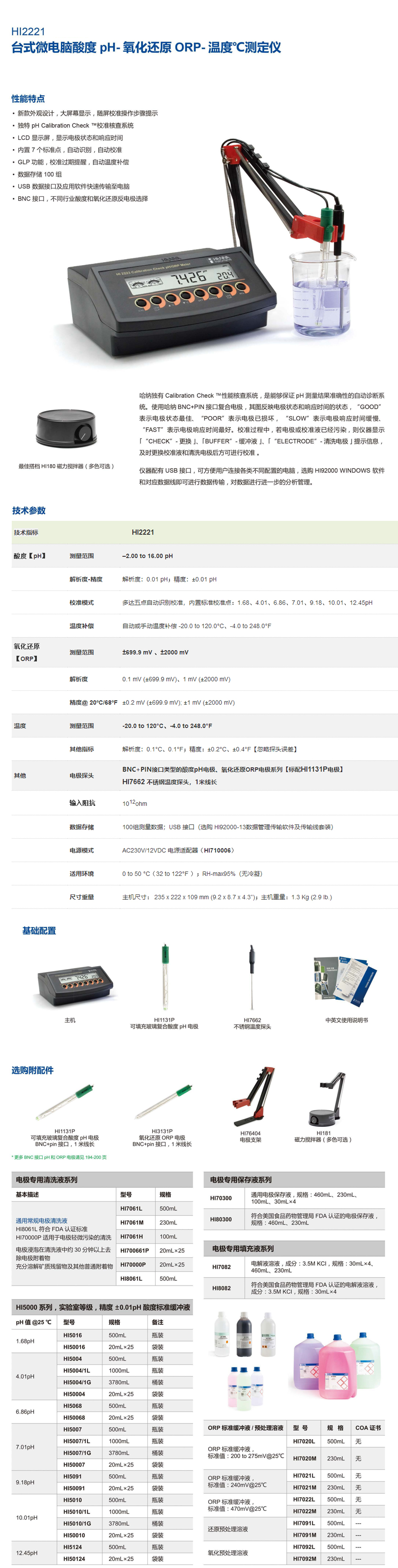 產(chǎn)品名稱:哈納 HI2221 pH-ORP-oC/oF測(cè)定儀
