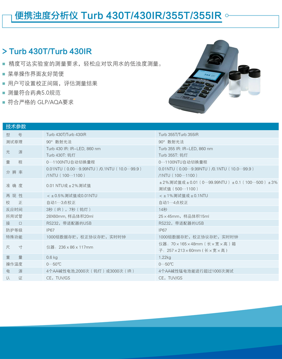 ◆ Turb 430IR符合DIN 27027/ISO 7027標(biāo)準(zhǔn)