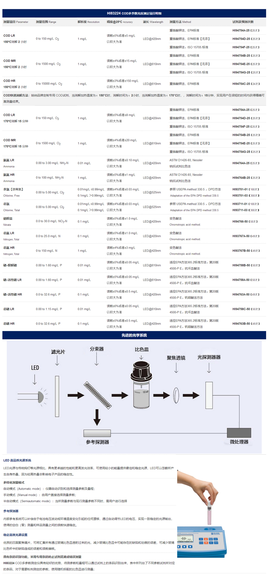產(chǎn)品描述:高性能COD多參數(shù)測定儀,余氯【游離氯】、總氯、氨氮、化學(xué)需氧量 COD、總氮N、總磷P、磷酸鹽【酸解磷、活性磷】、硝酸鹽【氮】重要水質(zhì)指標(biāo)精確快速測定,使用對應(yīng)的測量試劑,通過試劑上的條形碼,可自動(dòng)識(shí)別測量項(xiàng)目中所需測量項(xiàng)目、參數(shù)及測量范圍,無需手動(dòng)........