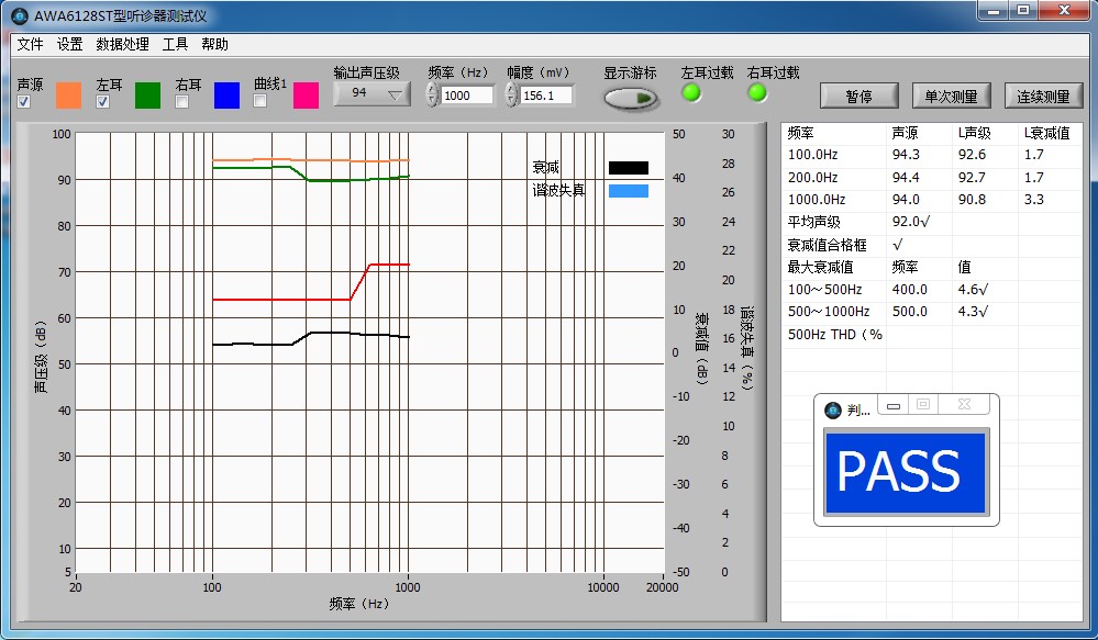 在設(shè)計、生產(chǎn)聽診器過程中,迫切需要一種能快速準(zhǔn)確地檢測出聽診器的傳聲特性的測量儀器。AWA6128ST型聽診器測試儀在此背景下應(yīng)運而生。AWA6128ST型聽診器測試儀執(zhí)行《YY 91035-1999 聽診器》和《YY 91077-1999聽診器傳聲特性測試方法》等標(biāo)準(zhǔn),專門用于聽診器傳聲特性測試。軟件能將測試聲源聲壓級、聽診器傳聲輸出聲壓級、兩者衰減值和合格框以曲線顯示,非常直觀。