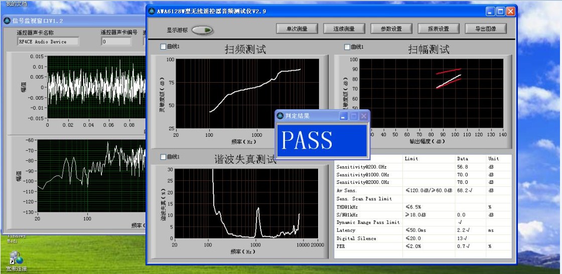 根據(jù)設(shè)定的門限自動判斷合格品或不合格品。不合格項(xiàng)目自動顯示X 字符,方便用戶找出不合格項(xiàng)目。測試結(jié)束后,簡潔直觀的顯示出PASS/FAIL,極大的提高了測試效率。軟件能導(dǎo)出測試報(bào)表和圖像。儀器由電聲測試儀主機(jī)、消聲箱和專用的分析軟件組成。
