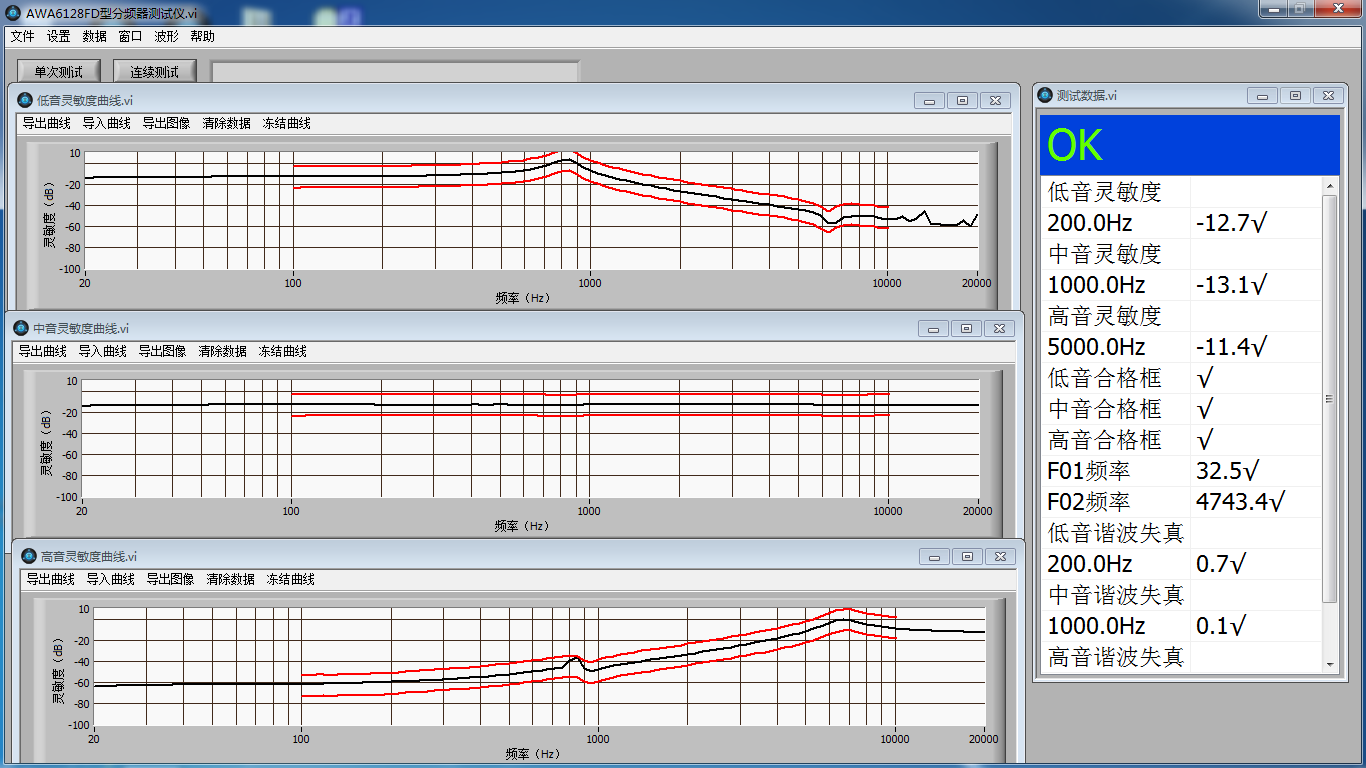 產(chǎn)品描述:AWA6128FD型分頻器測(cè)試儀可以同時(shí)測(cè)量三分頻的高通(高頻)、帶通(中頻)、低通(低頻)的靈敏度曲線。也可以同時(shí)測(cè)量二分頻的高通、低通的靈敏度曲線。每個(gè)通道靈敏度曲線均可以單獨(dú)設(shè)置合格框,軟件根據(jù)每個(gè)通道的靈敏度曲線合格框給出判定結(jié)果........