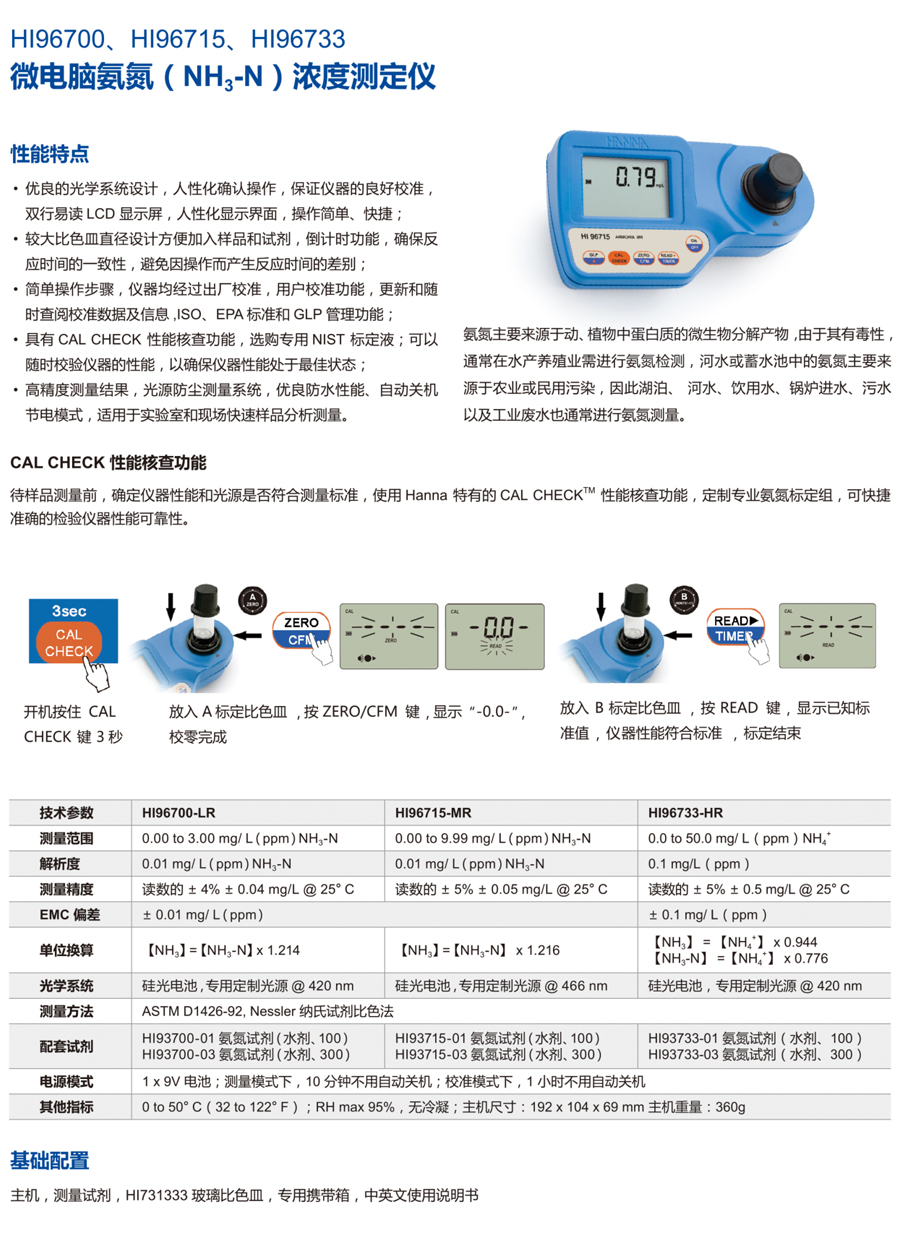 產(chǎn)品名稱:哈納 HI96733 氨氮【HR】防水光度計(jì)