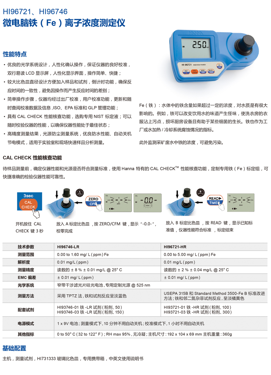 產(chǎn)品名稱(chēng):哈納 HI96746 鐵【LR】濃度測(cè)定儀
