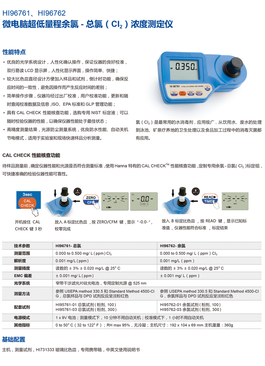 溫馨提示:新款HI97762 余氯【游離氯】ULR測定儀,采用菜單操作模式,先進的光學(xué)系統(tǒng),窄帶干涉濾波器可提供更準確和可重復(fù)的讀數(shù),簡易步驟說明的教程模式,自動記錄最近50次測量。