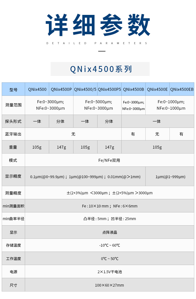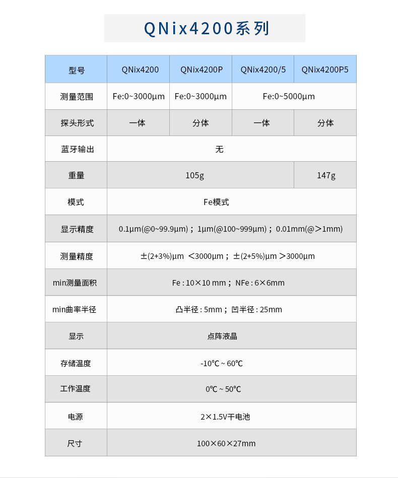 產(chǎn)品描述:QNix4200和QNix4500這兩種型號一體化/分體化設(shè)計(jì),只需調(diào)零,無需校準(zhǔn),使用極其簡單。其中QNix4200為磁性測厚儀,可以用來測量鋼、鐵等磁性基體上的涂層、鍍層;QNix4500為磁性和渦流兩用測厚儀.........