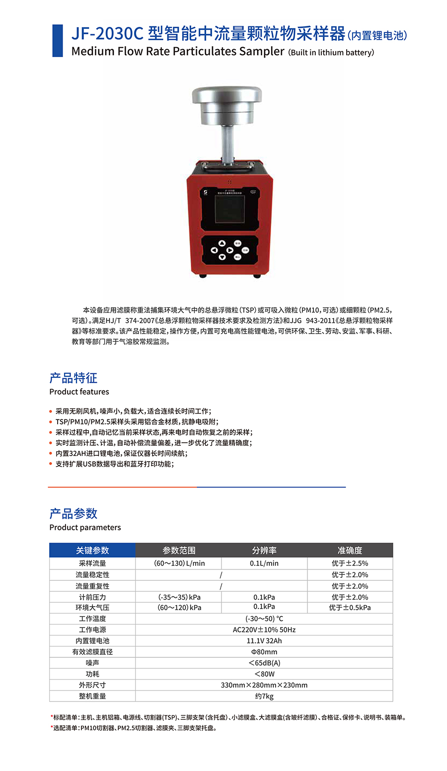 產(chǎn)品名稱:JF-2030C型智能中流量顆粒物采樣器(內(nèi)置鋰電池)