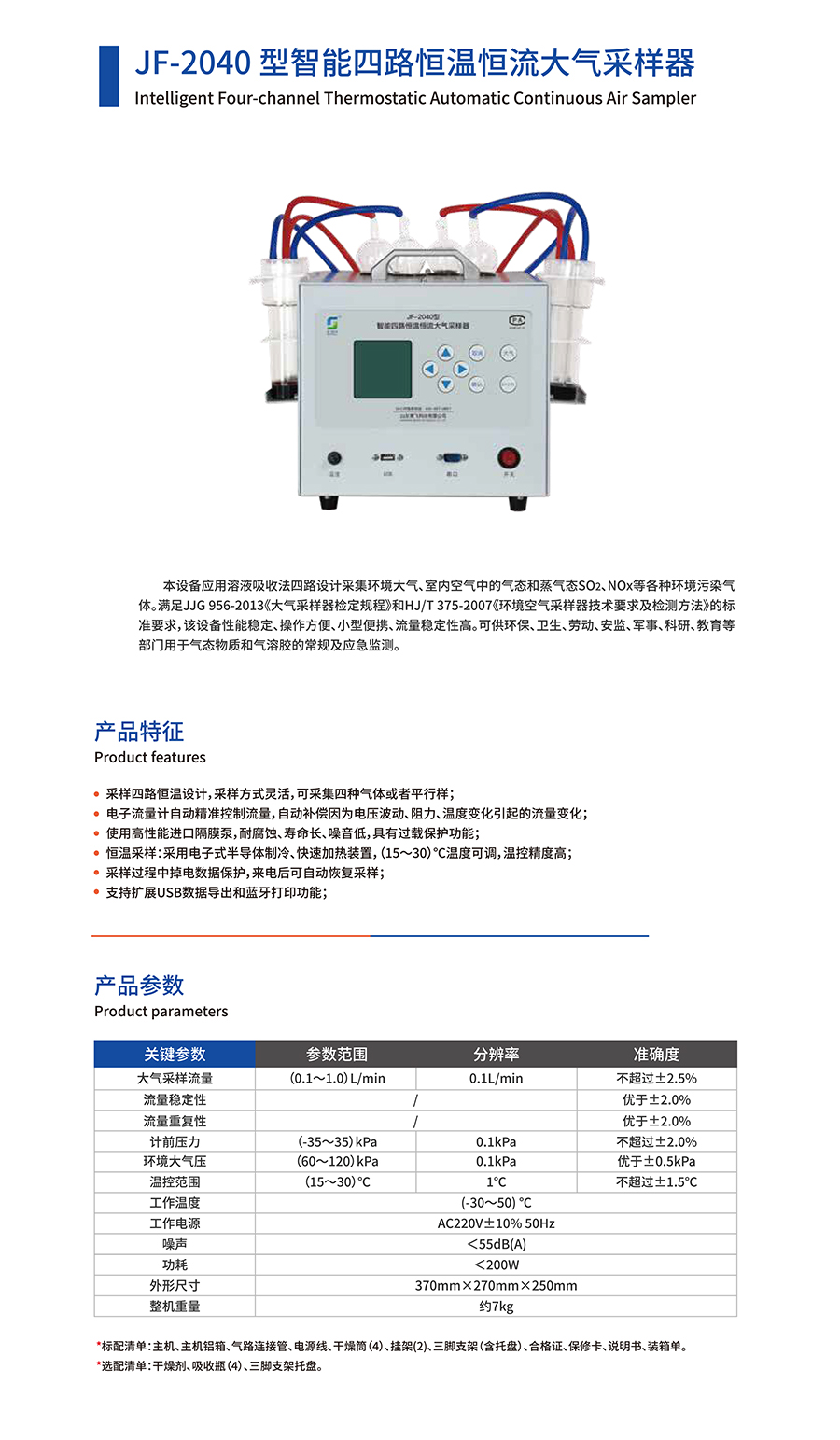 產(chǎn)品名稱(chēng):JF-2040型智能四路恒溫恒流大氣采樣器