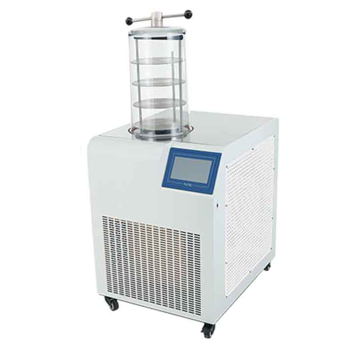 冷凍干燥機主要原理利用升華使物料脫水的一種低溫干燥設(shè)備,將含水物料冷凍成固體,在低溫低壓條件下利用水的升華性能,使物料低溫脫水而達(dá)到干燥的新型干燥手段,適用于生物研究、醫(yī)學(xué)制藥、化工、食品加工、大專院校等領(lǐng)域進(jìn)行冷凍干燥、菌種保存等領(lǐng)域。臺式冷凍干燥機系列分為普通型、手動壓蓋型、多歧管型、壓蓋多歧管型等四種機型,主要原理利用升華使物料脫水的一種低溫干燥設(shè)備,將含水物料冷凍成固體,在低溫低壓條件下利用水的升華性能,使物料低溫脫水而達(dá)到干燥的新型干燥手段,適用于生物研究、醫(yī)學(xué)制藥、化工、食品加工、大專院校等領(lǐng)域進(jìn)行冷凍干燥、菌種保存等領(lǐng)域。